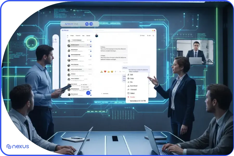 همکاری تیمی با ابزارهای اشتراک گذاری و چت یکپارچه، هماهنگی بین تیمها را تقویت میکند. نکسوس فضایی امن برای تبادل ایدهها ایجاد میکند که بهبود ارتباطات سازمانی را ممکن میسازد. در سازمانهای بزرگ، جایی که تیمهای مختلف بر روی پروژههای مشترک کار میکنند، نکسوس با ویژگیهای مانند کانالهای موضوعی و ادغام با ابزارهای دیگر، پلتفرم مدیریت سازمانی نکسوس را به ابزاری جامع تبدیل میکند.