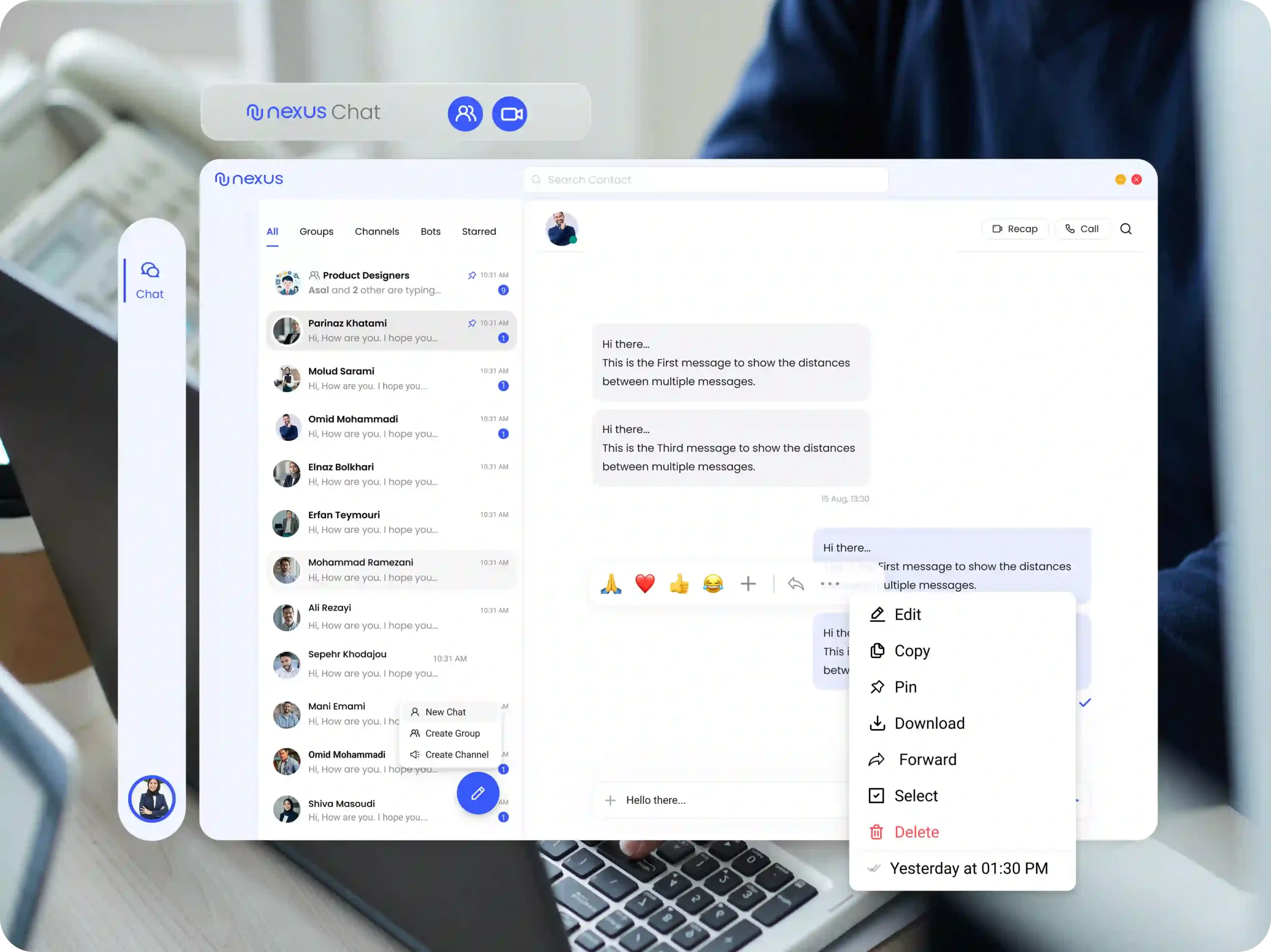 Nexus is an enterprise-grade digital collaboration platform that seamlessly unifies chat, video conferencing, calendar scheduling, task management, ticketing, and an intelligent assistant — delivering a cohesive, next-generation experience for organizational communication and daily operations.